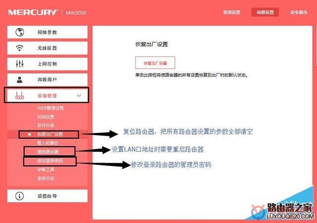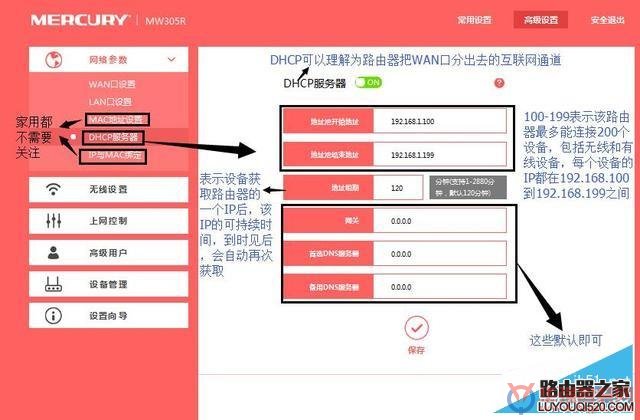 路由器高级设置中,主要包括WAN口设置、LAN口设置、路由器限速设置、Mac地址设置、IP与MAC绑定等,这些设置小白同学,请不要随意设置,需要对这些功能比较清楚才能去设置,否则不当设置,可能让路由器无法上网。