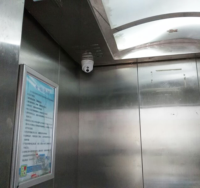 电梯环境较为狭小,建议安装视场角大(镜头焦距小)的半球型红外摄像机,小巧隐蔽: