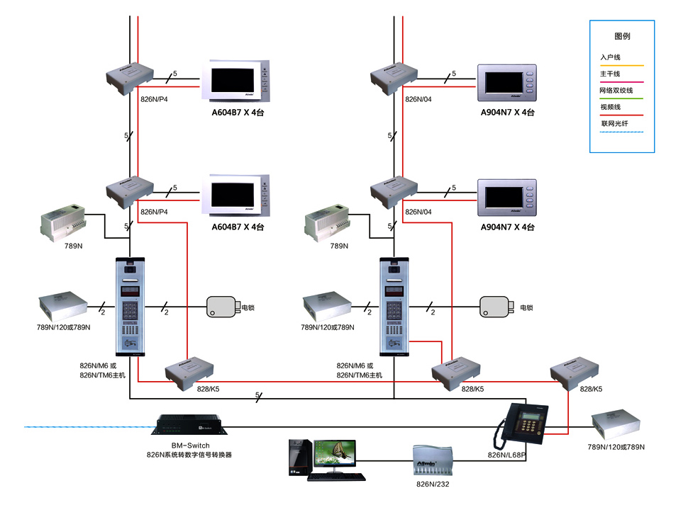 1、系统组网灵活、配置设备少:不同类型的分机可以经过楼层解码器或楼层保护器互联组网。