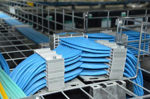 三、当网线与强电交叉或平行分布时,网线要与强电保持15公分左右的距离,同时要尽量远离可能的干扰设备。机房的网线要按交换机的位置留3-4米左右的余量。