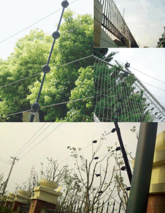 传统的红外对射系统对外来入侵者起不到阻挡作用,而且受杂光、红外反射光、强磁干扰及同频干扰导致误报率高,受天气和地形等自然环境影响大,抗干扰能力差。电子围栏解决了红外对射的缺点,所以本方案中设计采用电子围栏,通过脉冲高压电子围栏的建设,实现主动防护,入侵报警,报警视频联动等功能,可将企图入侵者拒之于防区之外,提高学校的安全防范等级。电子围栏是一种主动入侵防御围栏,采用脉冲式高压对入侵企图作出反应,阻拦入侵行为,延迟入侵的时间,并且不威胁人的性命,并把入侵信号送至报警主机,以保证值班人员及时了解防区信息并作出快速的处理,具有安全、可靠、智能化程度高、误报率低、安装和维护方便等优点,并可和其他系统联动。