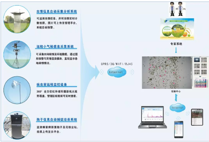 实时采集、在线查看、病虫害知识、智能分析、管理云平台、多渠道介入