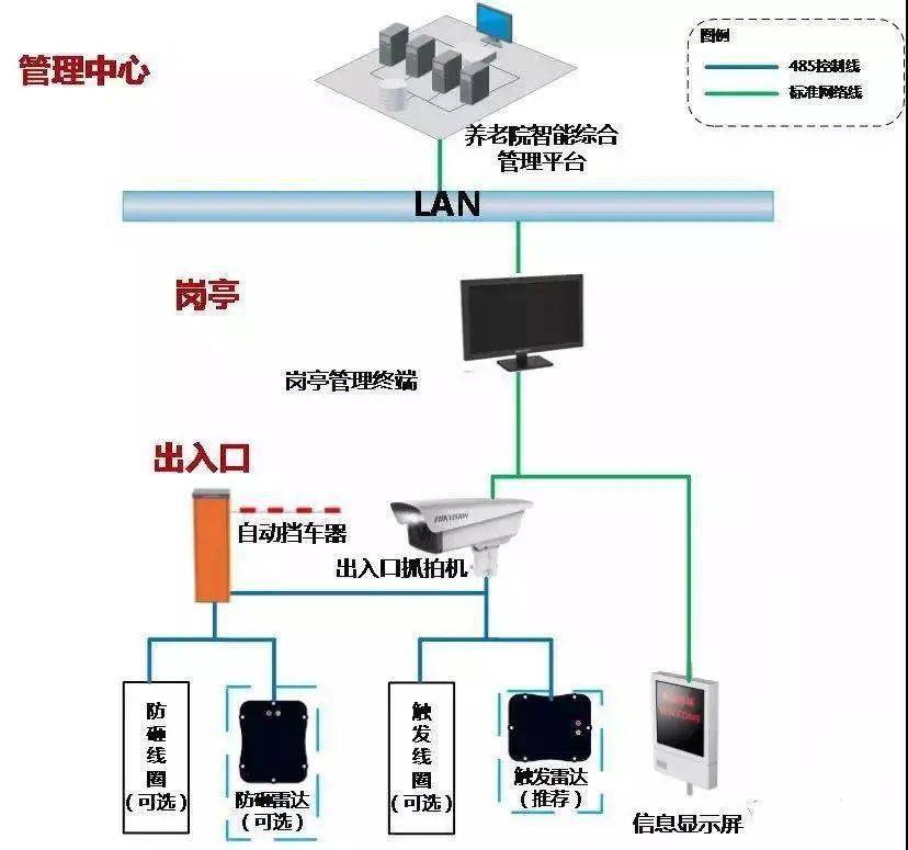 另外,可选用集成度高的设备,如智能补光抓拍一体机、智能补光抓拍一体化道闸,有效减少设备故障的节点数量,大大降低故障排查难度;可采用道闸雷达代替地感线圈,雷达使用寿命长,避免开凿路面、埋设线圈等操作,维护更为便利。上述设备的应用,均有利于停车场的运营维护,大大减少停车场系统故障系数,降低系统的维护难度。